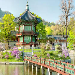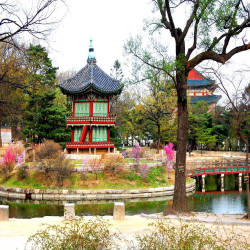 West of Geunjeongjeon is the spectacular Gyeonghoeru, a grand pavilion raised by 48 stone pillars and overlooking a man-made lake with two small islands. Royal banquets were held inside, and kings often took rowing boats on the pond.