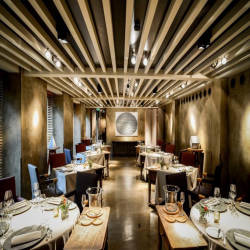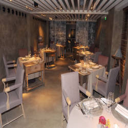 Trang trí của Atelier được thực hiện bởi nhà môi giới nghệ thuật và thiết kế nội thất nổi tiếng người Bỉ, Axel Vervoordt. Mọi thứ bên trong nhà hàng toát lên sự tinh tế sang trong và trang nhã kết hợp với bầu không khí thân mật. Khám phá đằng sau bức tường di động một căn phòng Privé riêng tư được tạo bởi nghệ sĩ người Bỉ, Dirk Vander Eecken, hoặc thư giãn tại sân thượng nhỏ với những cây phong lửa đỏ xung quanh.