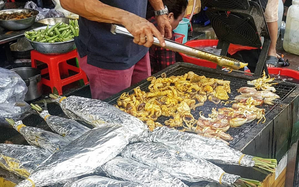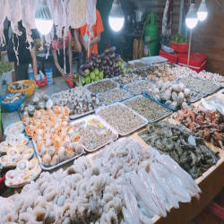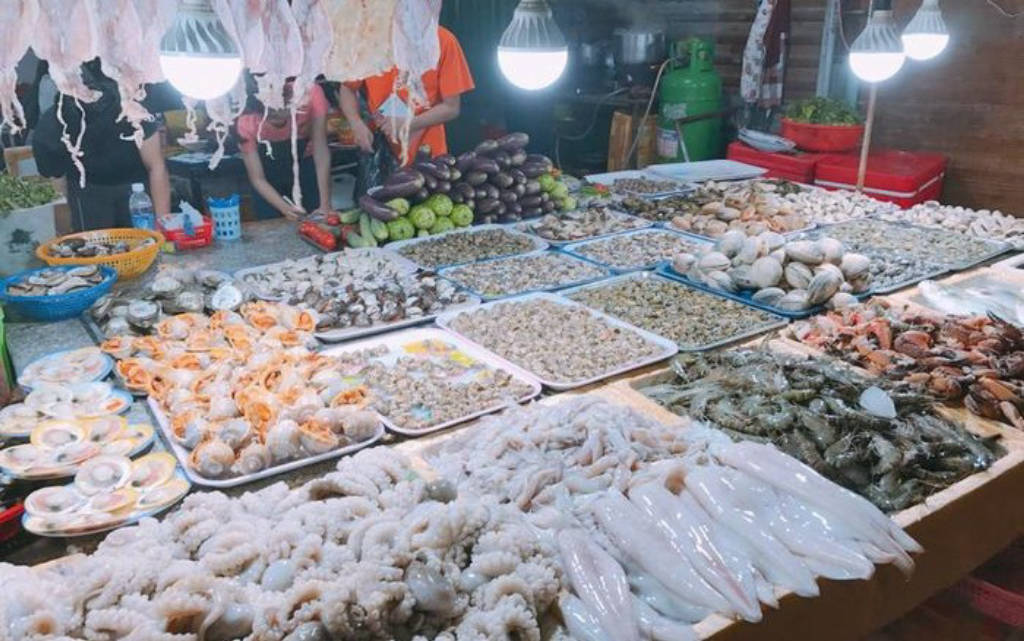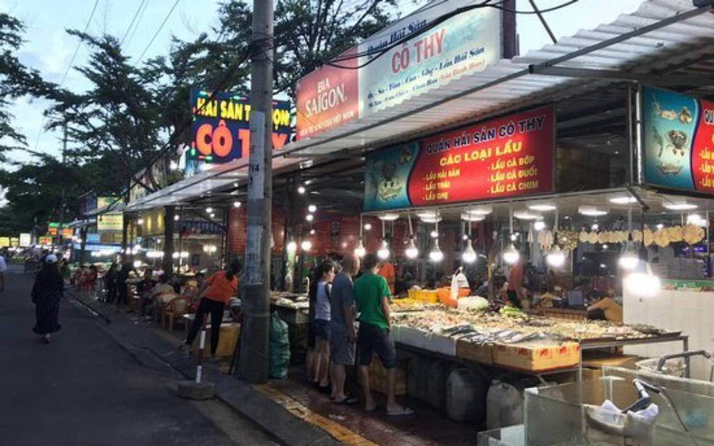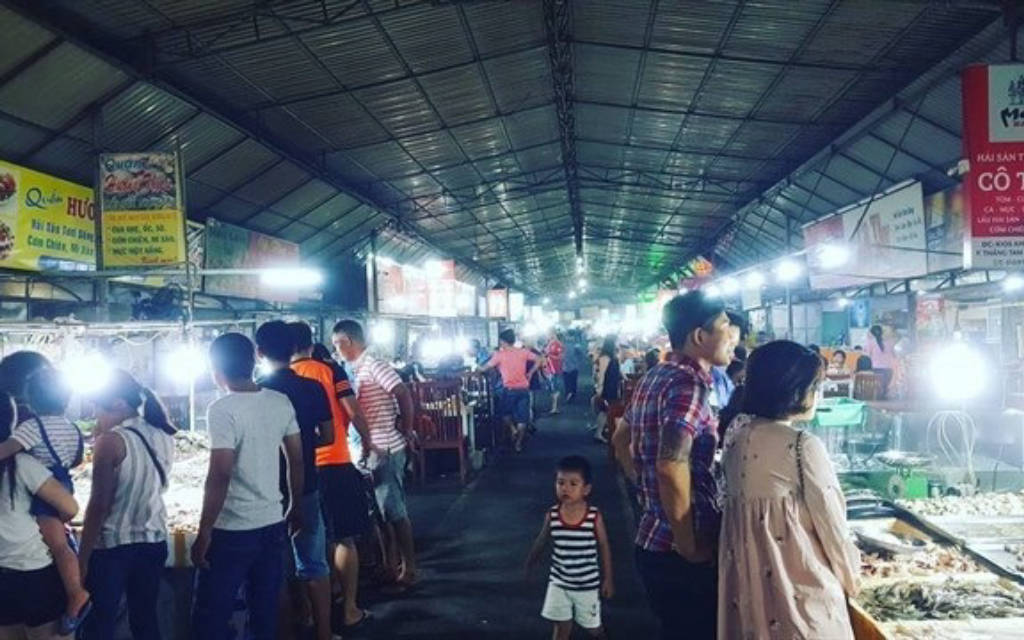 Hải sản ở Vũng Tàu thường được biết đến ngon và đa dạng về chủng loại, nhắc đến hải sản Vũng Tàu không thể không nhắc tới khu chợ đêm nơi tập trung rất nhiều các hàng quán bán hải sản. Khu chợ đêm nằm gần ngã 3 Nguyễn Biểu – Đào Duy Từ, trước mặt khu chợ đêm là khách sạn Imperial rất nổi tiếng, vì vậy bạn có thể bắt taxi hoặc chạy xe máy để tới đây một cách dễ dàng. Khu chợ đêm hải là một con đường dài, hai bên tập trung san sát những hàng quán chỉ chuyên bán về hải sản. Các quán mở cửa từ tầm 4 giờ chiều đến hơn 3 giờ sáng, một số quán có thể mở muộn tới gần sáng. Đến đây, bạn sẽ được tự tay lựa các loại hải sản: tôm, cua, cá, mực, nghêu, sò, ốc, hến… rồi đưa cho đầu bếp chế biến, họ sẽ chế biến ngay tại chỗ theo yêu cầu. Tất cả hàng quán ở đây đều có niêm yết giá điều này làm cho du khách sự an tâm về giá cả và khỏi lo bị chặt chém khi đi du lịch. Bên cạnh việc thưởng thức hải sản ở chợ đêm Vũng Tàu, bạn có thể di dạo quanh các gian hàng bán các món quà lưu niệm vô cùng độc đáo, có thể lựa chọn một món để về làm quà cho người thân, bạn bè. Những món quà nhỏ như móc khóa, chuông gió, phụ kiện, đồ trang trí...hầu hết đều làm từ vỏ ốc nên vô cùng xinh xắn.