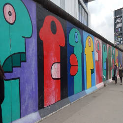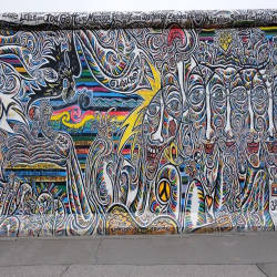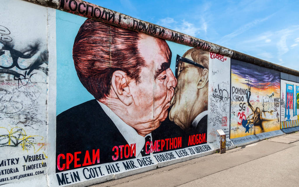 One of the particularly popular works at the East Side Gallery is “The Mortal Kiss” by artist Dmitri Vrubel, depicting the kiss of Leonid Brezhnev and Erich Hönecker; and the wall-breaking "Trabant" by Birgit Kinders.