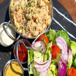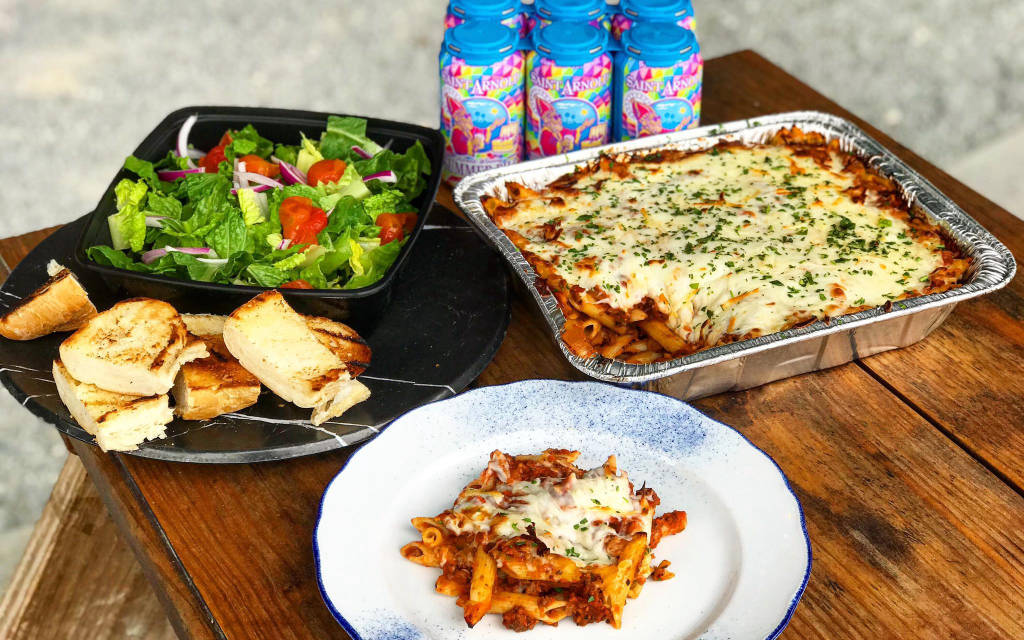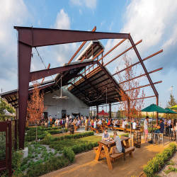 Với việc khai trương Nhà hàng & Vườn Bia, bếp trưởng điều hành Ryan Savoie đã mở rộng thực đơn để bao gồm pizza, một số món mới và một số món kinh điển đã nổi tiếng nhiều năm tại đây như cánh gà chiên, burger, thịt heo chiên giòn.