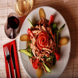 Nhà hàng nổi tiếng với món halep işi kebab - thịt viên nướng, ớt, hành tây và gia vị - là một món khoái khẩu theo đánh giá của nhiều thực khách. Thực đơn dành cho brunch (bữa nửa buổi) và bữa tối có đầy đủ các món sốt và đồ ăn kèm; Phô mai Địa Trung Hải, dưa chua tự làm, và thịt nướng như vịt prosciutto với myrrh và cam; mezze nướng chẳng hạn như bánh mì dẹt manakish; các loại thịt và hải sản nướng; và rất nhiều lựa chọn ăn chay. Ngoài ra thực khách có thể thưởng thức tập hợp các món truyền thống được chế biến từ nguyên liệu của vùng Levant, chẳng hạn như pho mát Halloumi giòn với mật ong thông và dukkah Ai Cập, hoặc thịt cừu kết hợp với sữa chua hun khói và ớt. Danh sách rượu vang được thu hút rộng rãi từ Georgia, Armenia và Israel, trong khi các loại cocktail cũng được kết hợp hương vị từ khu vực Trung Đông chẳng hạn như đồ uống với vodka ngâm cây sơn hoặc một loại khác với raki, rum, bạc hà và dưa chuột.