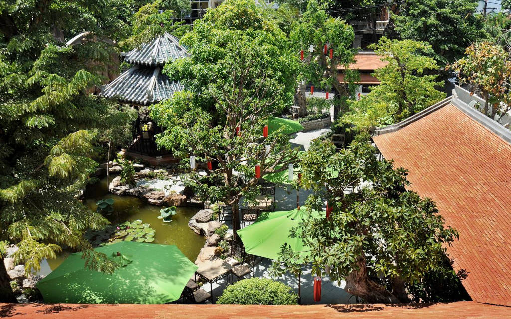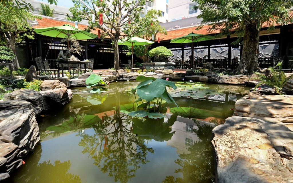 Cảnh quan nơi đây với vườn cá, ao sen, những cây trúc, cây cổ thụ, với tiếng chim hót ríu rít trên cành ... là nơi tuyệt vời cho những ai thích ăn uống, cafe trong không gian cổ kính và yên tĩnh.