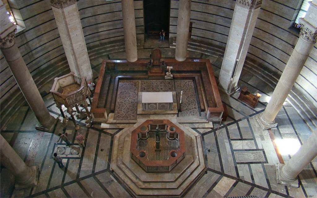 Nicola Pisano, đã xây dựng Pulpit of the baptistery, một trong những kiệt tác đầu tiên ông từng thực hiện. Các tác phẩm điêu khắc và kiến trúc đã được hợp nhất hoàn hảo với nhau để tạo thành một loạt hình ảnh ấn tượng. Hình thức cổ điển của Hercules là một trong những tác phẩm nổi tiếng nhất để xem. Lan can đá cẩm thạch được cấu trúc theo hình lục giác. Những tác phẩm điêu khắc này được đặt ở ba nơi; phía dưới, nơi đặt các cột của sư tử và ở trung tâm của hình người.