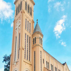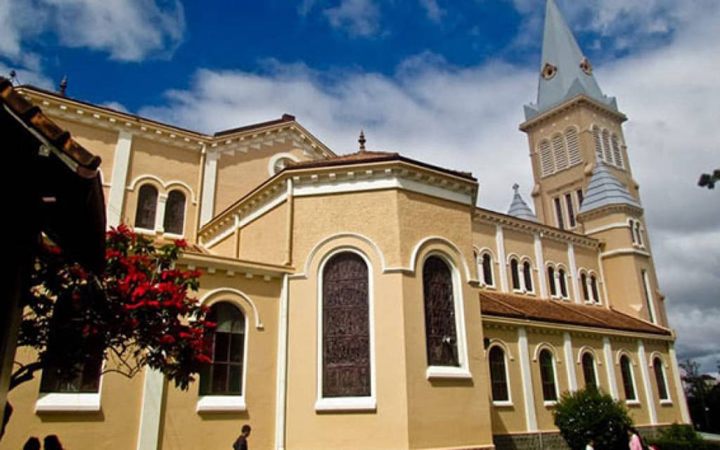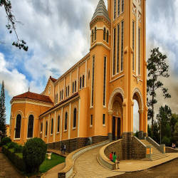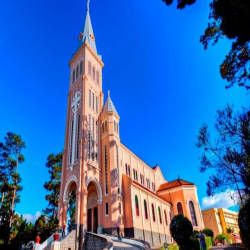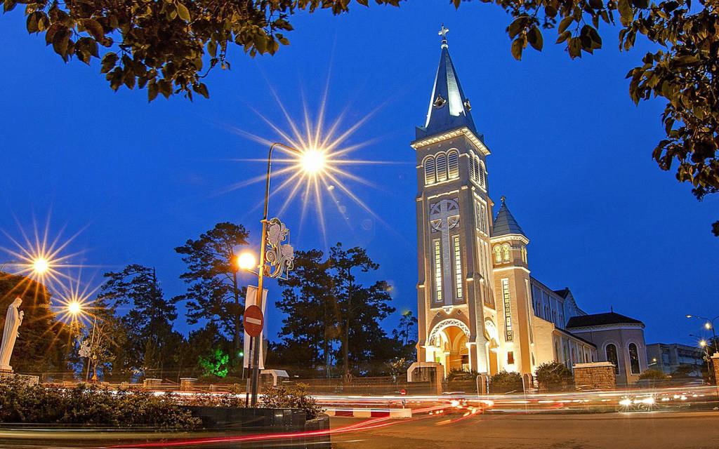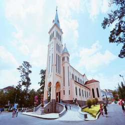 Da Lat Cathedral, known to many as the Chicken Church, is located on Tran Phu Street, about 600m from Xuan Huong Lake and Da Lat Market. The church is one of the symbols of this city of thousands of flowers, built from 1931 to 1942, when completed, the church became the center of Da Lat diocese. The name chicken church comes from the top of the bell tower has a bronze rooster with the function of making a lightning rod against lightning, this bronze chicken can rotate around the axis for people to determine the direction of the wind. And in the Bible, the image of the rooster reminds him of the image of Saint Peter denying Christ three times before the rooster crows, when the sound of the rooster awakens him to repentance. Chicken church with typical architecture of the Roman school of architecture, the inside is divided into three compartments, a large space in the middle and two small compartments on either side, the attic is decorated with 70 colored glass panels. depicting images of saints of the Catholic Church, all imported directly from France. On Christmas nights, the church is beautifully decorated, making the church attractive to many domestic and foreign tourists to visit. Coming here, you can not only visit the ancient architecture but also have the opportunity to learn about the history of Da Lat through stories about the church.