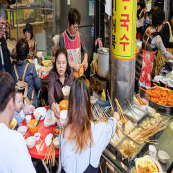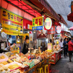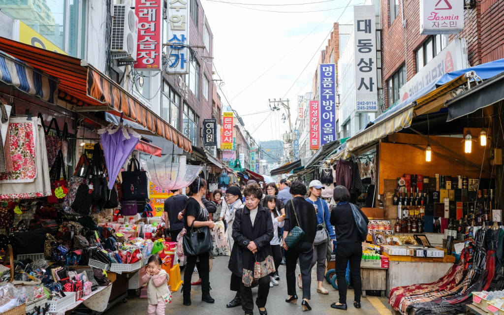 With a history going back decades, Gukje Market is the largest traditional market in Busan. Gukje Market was established during the Korean War in 1950 as a place where refugees opened shops to make a living, but quickly developed into a thriving popular market. Gukje Market was once a commercial center, supplying imported goods to the US military and also to neighboring port cities. Even today, the area is bursting with vintage market spirit, similar to Namdaemun Market in Seoul. Gukje Market is located in the central shopping belt of Nampo-dong, close to popular attractions such as Jagalchi Fish Market, Nampo-dong shopping district, Yongdusan Park as well as various markets such as Bupyeong Market and Kkangtong Market.
