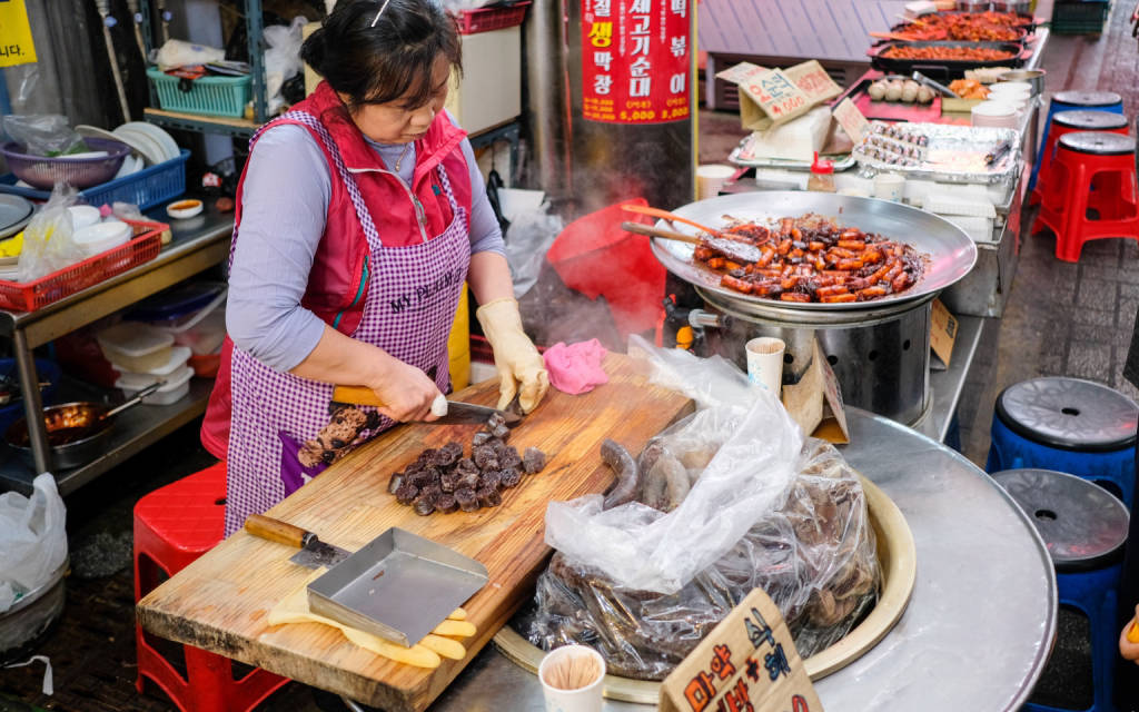 Gukje Market is also a great place to enjoy traditional Busan street food. Located in the market, Restaurant Street serves delicious Korean dishes such as kimbap (white rice wrapped in dried seaweed), sundae (blood sausage) and a variety of noodle dishes, including fish stalls that are always crowded with people. Diners gather at shared plastic tables to enjoy cheap and fast food and immerse themselves in the vibrant atmosphere.