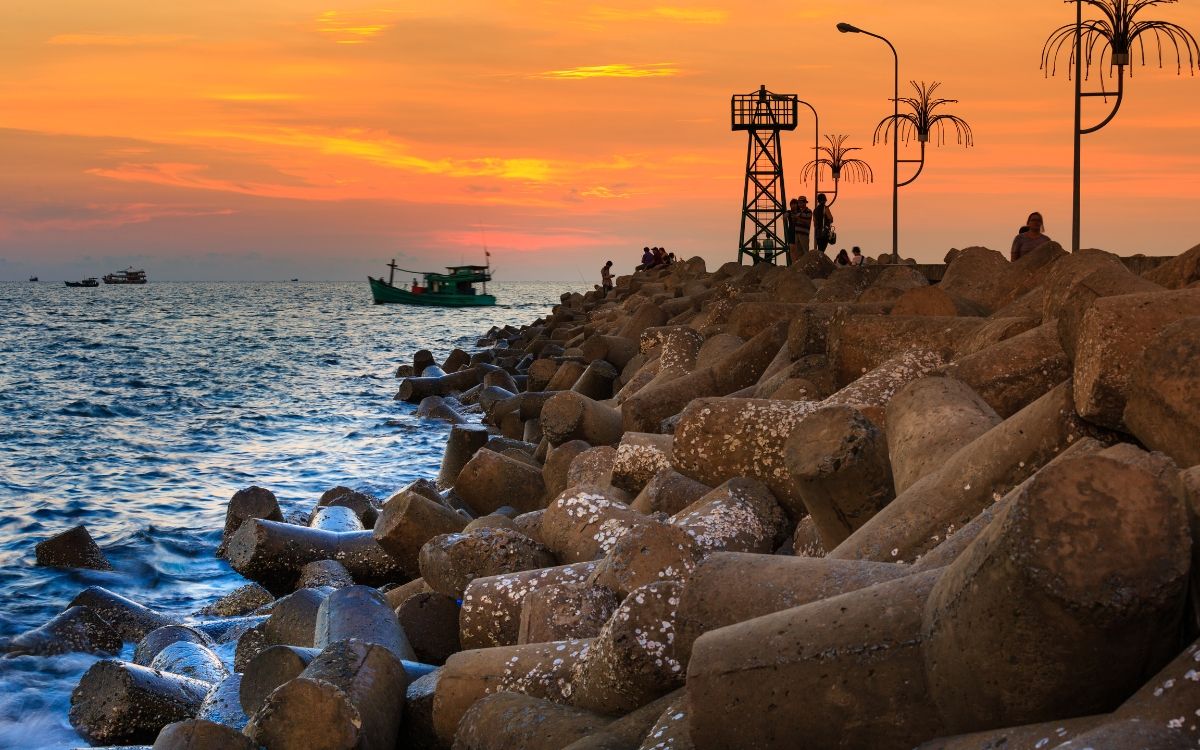 Đi dạo dọc theo Bãi Trường để ngắm mặt trời lặn xuống đường chân trời, tô điểm cho bầu trời những sắc màu sống động.