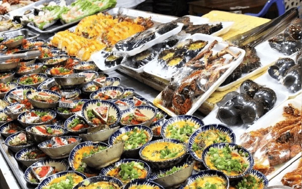 Du khách có thể thưởng thức bữa tối hải sản nướng tươi ngon tại một nhà hàng địa phương gần chợ đêm. (chi phí tự túc)
